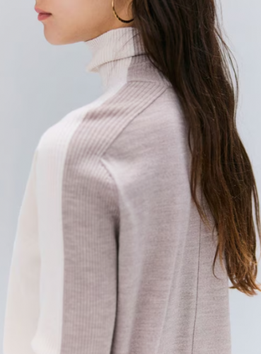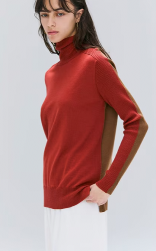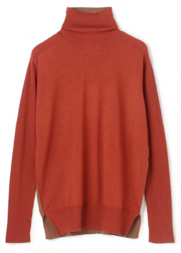 BEIGE,人気ニットシリーズから、シーズンカラーをあしらったタートルネックが新登場。前後のカラーブロックがメリハリを与える主役級デザイン。程よくフィットするタートルネックは、折り返さずに自然なたるみを持たせるのがおすすめ。裾に施されたスリットでこなれ感を演出し、ボトムを選ばず合わせやすい着丈も魅力。ジャケットやコートのインナーとしてはもちろん、オフィスやお仕事、普段のカジュアル着として、幅広いシーンで着回せる万能ニットです。