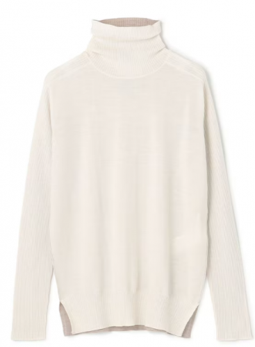 BEIGE,人気ニットシリーズから、シーズンカラーをあしらったタートルネックが新登場。前後のカラーブロックがメリハリを与える主役級デザイン。程よくフィットするタートルネックは、折り返さずに自然なたるみを持たせるのがおすすめ。裾に施されたスリットでこなれ感を演出し、ボトムを選ばず合わせやすい着丈も魅力。ジャケットやコートのインナーとしてはもちろん、オフィスやお仕事、普段のカジュアル着として、幅広いシーンで着回せる万能ニットです。