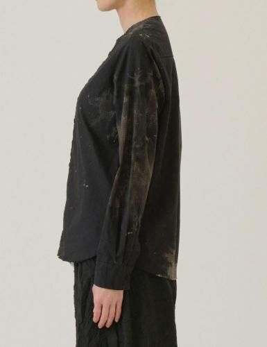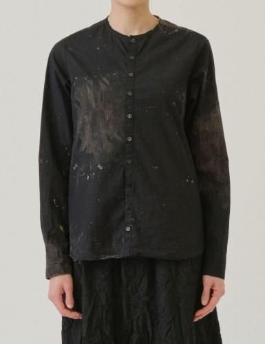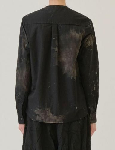 pas de calais 25AW 先染めチェック黒抜き抜染 クルーネックシャツ ブラック