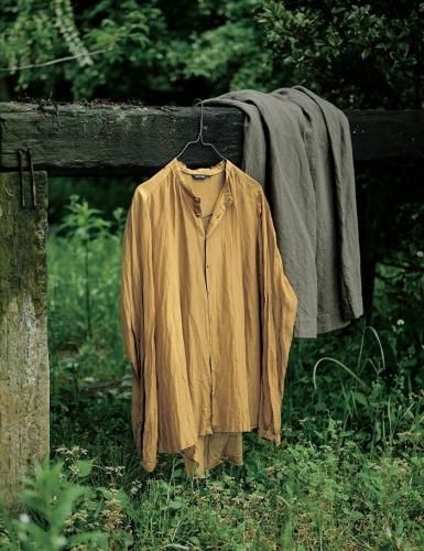 ボタニカルダイで染めあげた、ギャザーブラウス。
