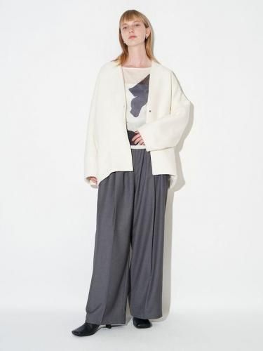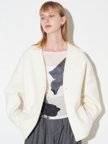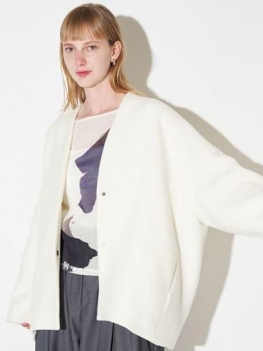ノーカラーデザインなのでキレイめにもカジュアルにも幅広く着まわせる便利な一枚。