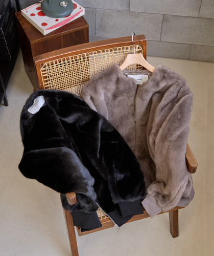 ADAWAS 2025AW FAUX-MINK ZIP JACKET