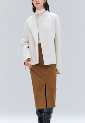 しっとりとした手触りと美しいツヤが特徴の「SUPER120'Sジロンラム」リバー素材。オーストラリアの厳選された地域で育った羊から、特別に長く細い毛だけを選び抜いた希少なウールで、非常に柔らかくぬめり感のある上質な風合いが生まれます。「モッサ仕上げ」を施すことで、ふっくらとした弾力とソフトな肌触りを実現した、見た目よりもはるかに軽い着心地と暖かさを兼ね備えています。纏うたびに心地よさを感じていただける、こだわりの素材です。