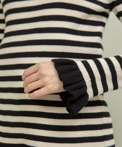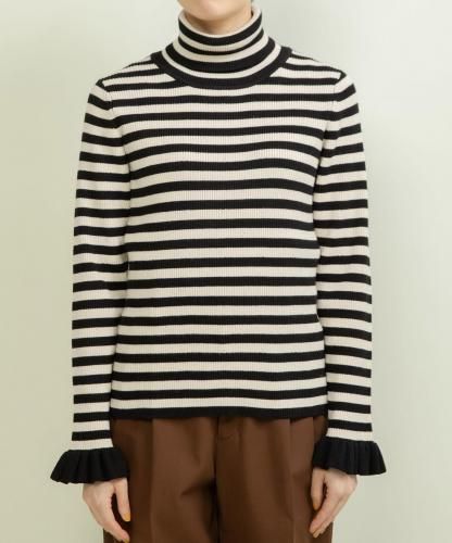 CHILD WOMAN もちもち袖口フリル アイレットリブタートル
