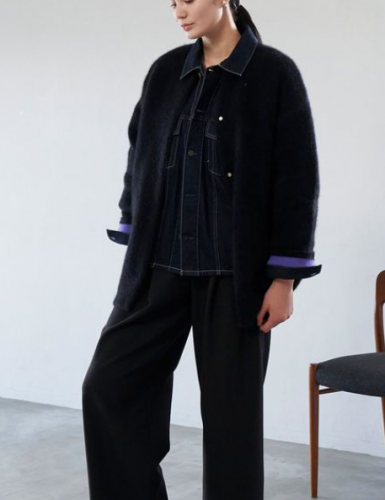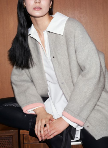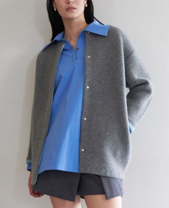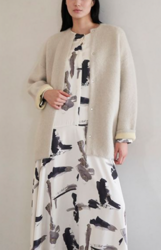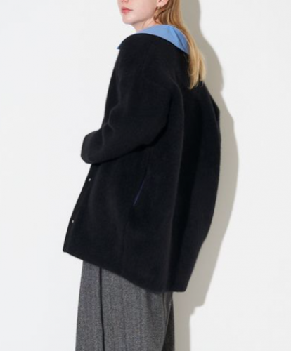 ・ヒップが隠れる合わせやすい着丈と、コンパクトなコクーンシルエット。