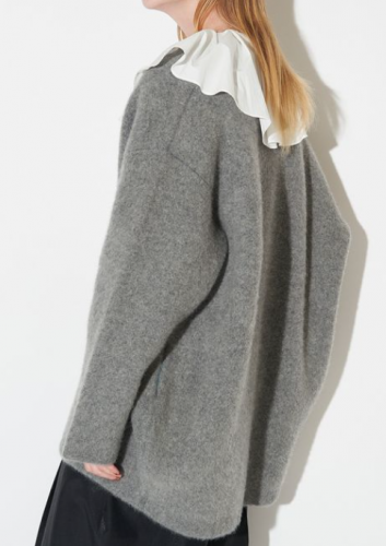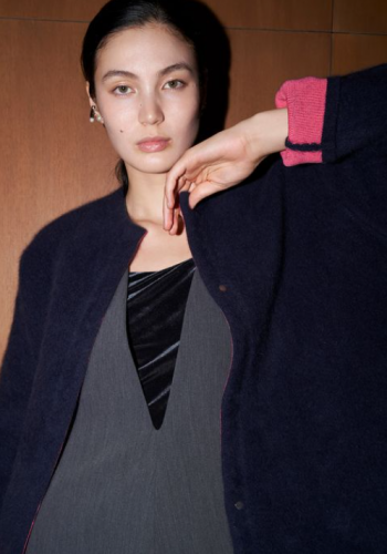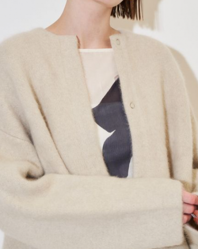 ・1重だと柔らかすぎてフェミニンになり過ぎる毛足の長い素材を、2重編みにすることで、保温性と共にデイリーに昇華。