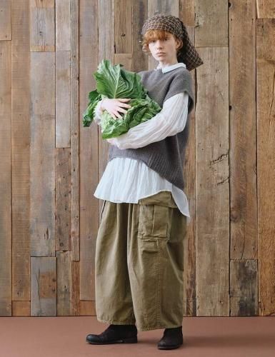 シルエットにもポケットにもボリュームがあるので、ブラウスをウエストインしたり、コンパクトなトップスとのコーディネートも。